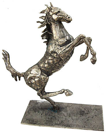 HELIDON XHIXHA Durazzo (Albania) 1970 Cavallino rampante 2003 Fusione in bronzo argentato a cera persa es.8/75. (40 x 35 x 16). Firma sulla base. Tiratura: 75 es. num. arabi + XXV es. num. romani. La scultura monumentale realizzata in acciaio inox alta 5 metri per 800 chili, si trova presso gli stabilimenti Ferrari a Maranello. Autentica dell’autore su foto + certificato d’autenticità Gigart, Roma. B.A.: A OFFERTA