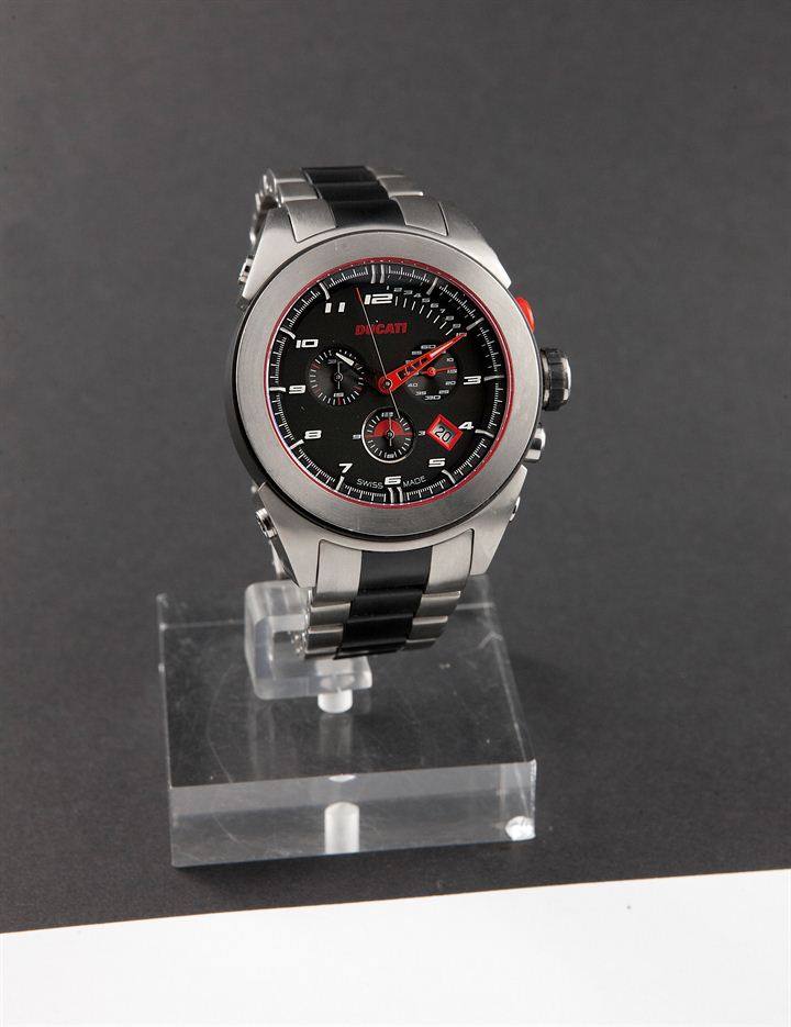 DUCATI Cronografo a tre contatori, serie recente Diam 40 Cassa in acciaio con...