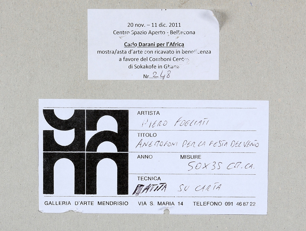 PIERO FOGLIATI 1930 - 2016 Anemoni per la festa del vento Grafite su carta, cm. 35 x 50 Siglato al centro Etichetta Galleria d’Arte Mendrisio, sul retro ESPOSIZIONI: “Carlo Darani per l’Africa”, mo- stra/asta d’arte, Centro Spazio Aperto, Bellinzona Prov. Collezione Privata