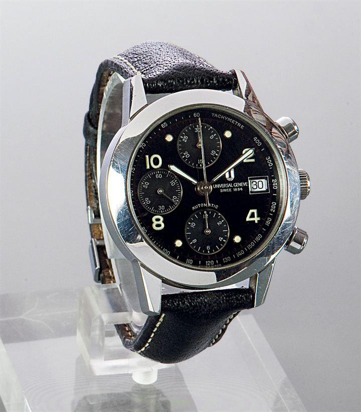 UNIVERSAL GENEVE Cronografo a tre contatori, anni '90 Diam. 38 Cassa in...