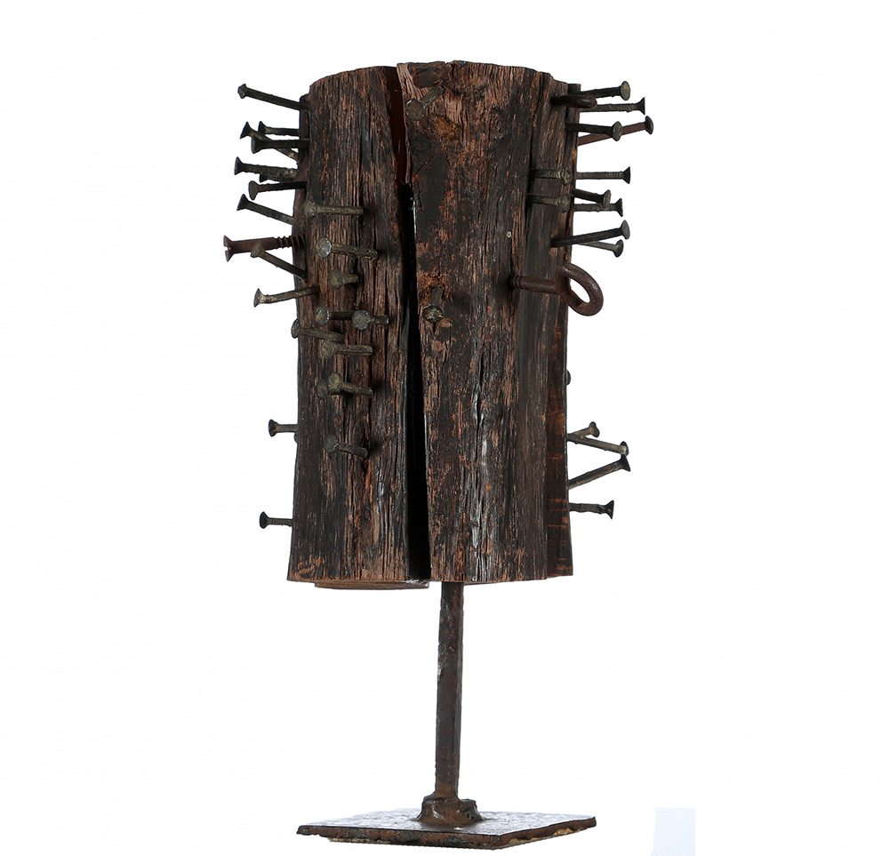 MARIO CEROLI 1938 Senza titolo, fine anni ‘50 Scultura in legno e ferro, cm. 33 x 22 x 22 ca. (di cui base h. 11) Prov. Collezione Privata