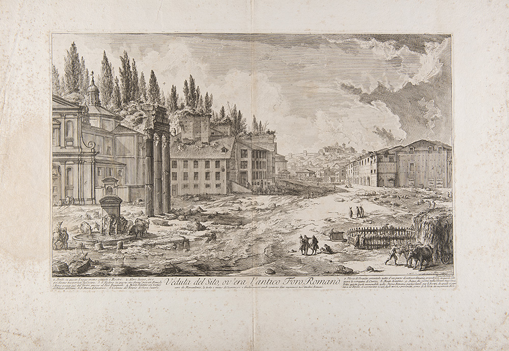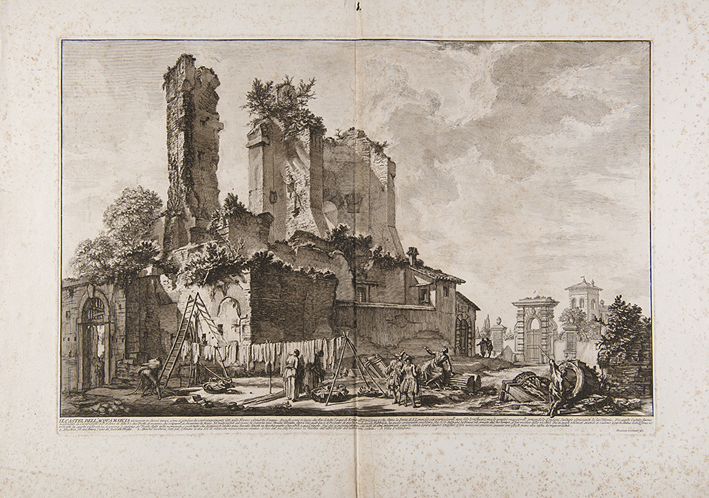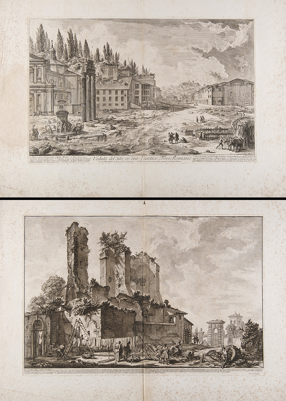 Due acqueforti raffiguranti "Veduta del sito ovvero l'antico foro di Roma" e "Il Castel dell' Acqua Marcia"