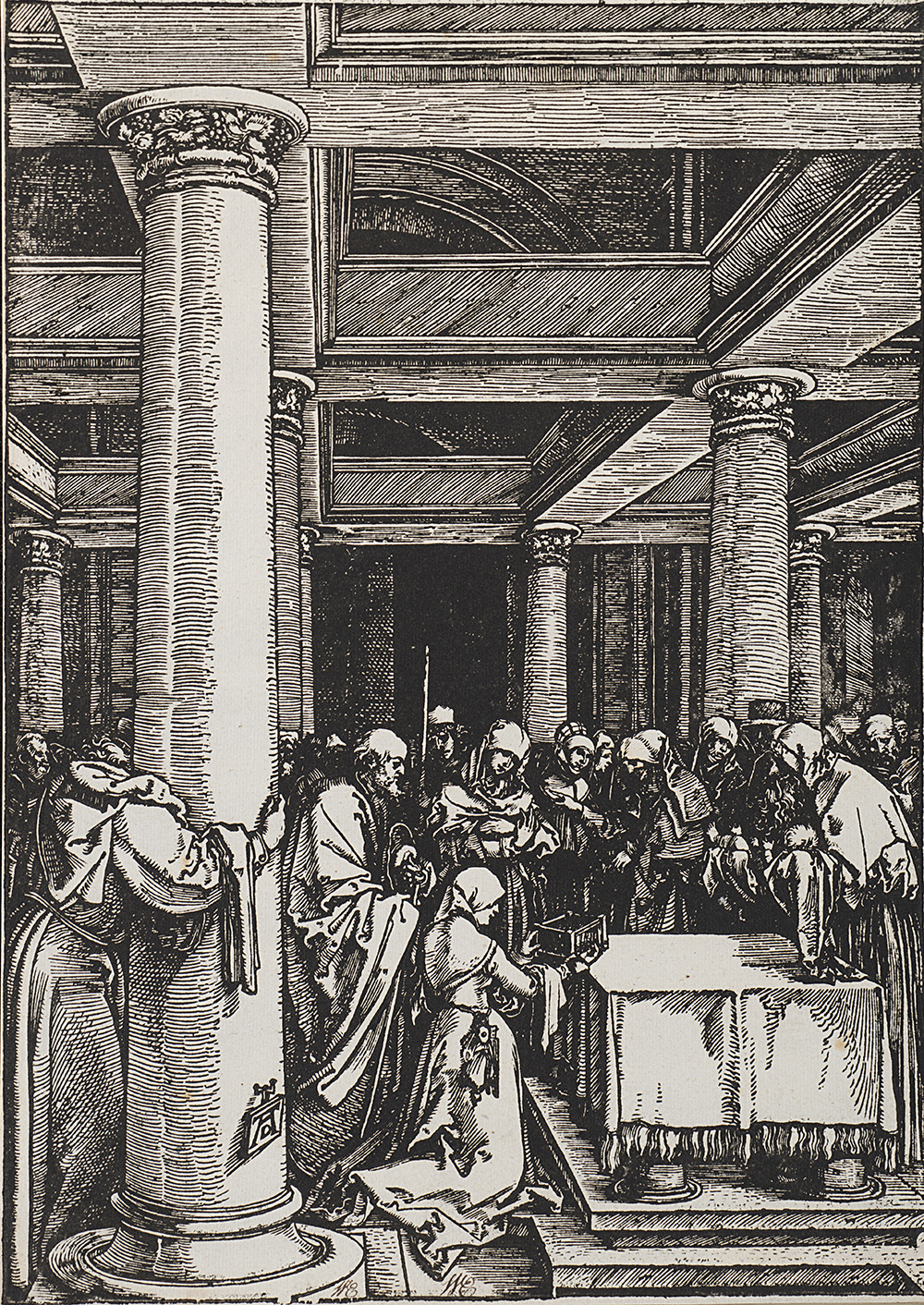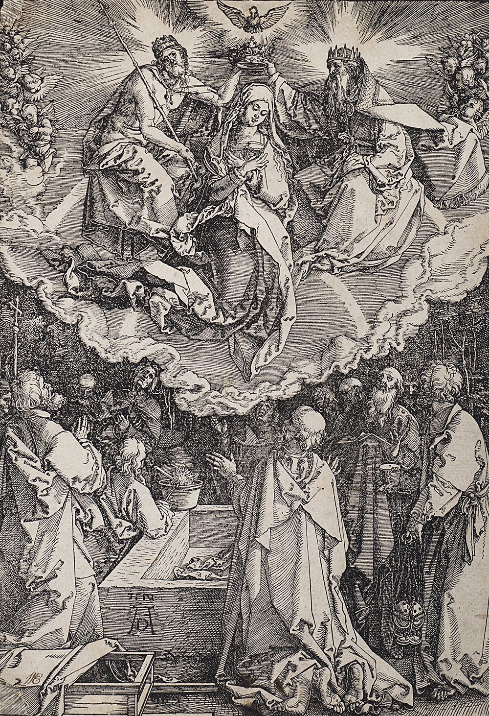 Lot composed of three woodcuts by Albrech Durer (Norimberg 1471-1528) depicting "The birth of the Virgin", "The presentation of the Christ in the temple" and "The assumption and coronation of the Vergin" (from "The Life of the Virgin"), different editions