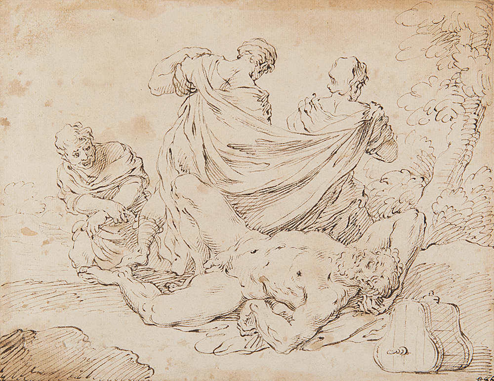 Pen and brown ink and traces in black chalk on paper 210x269 mm.