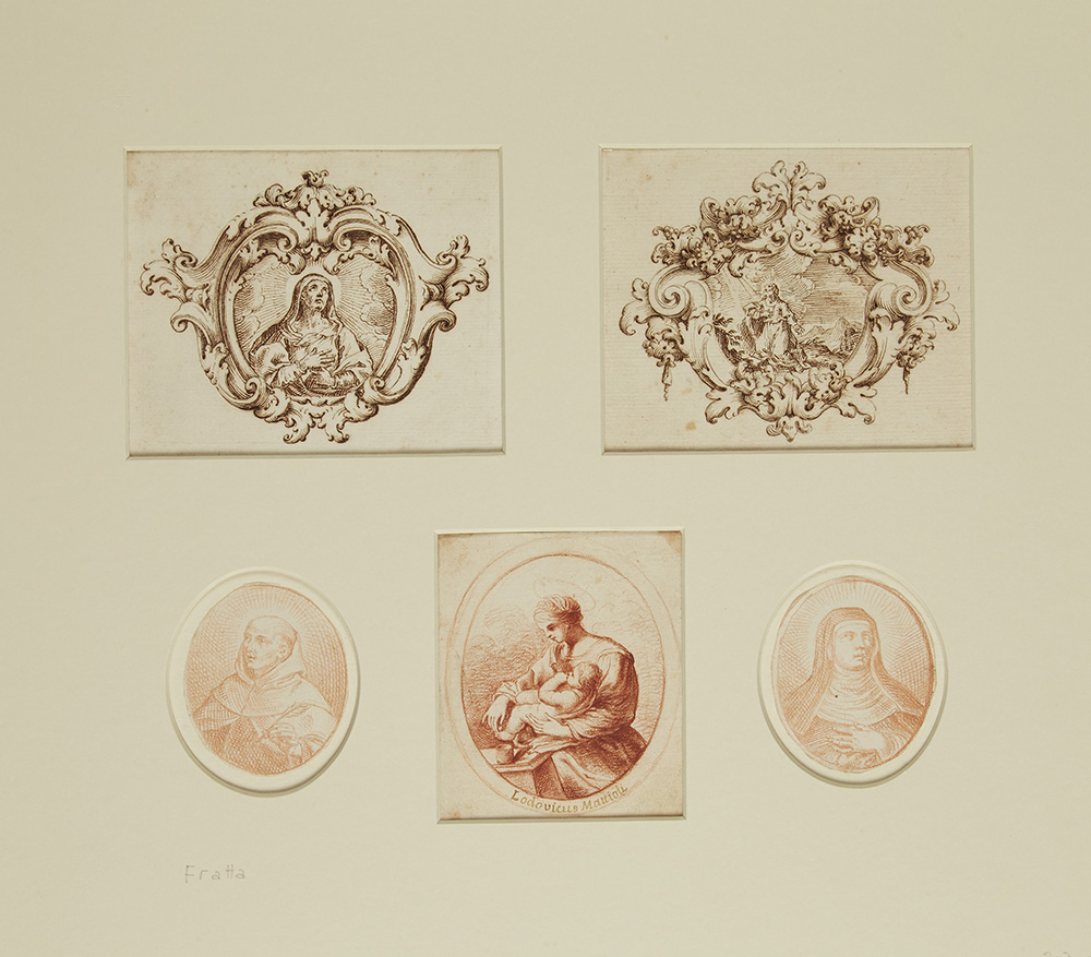Group of five drawings depicting "Saints". Two are counterproofs