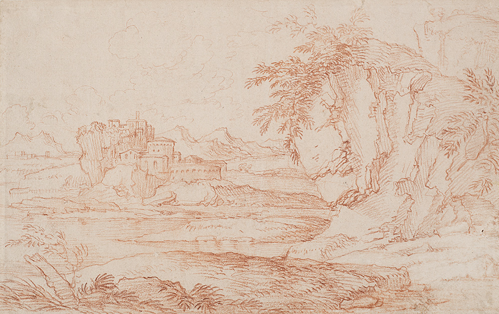 Artista degli inizi del secolo XVIIIPaesaggioMatita rossa su carta applicata...
