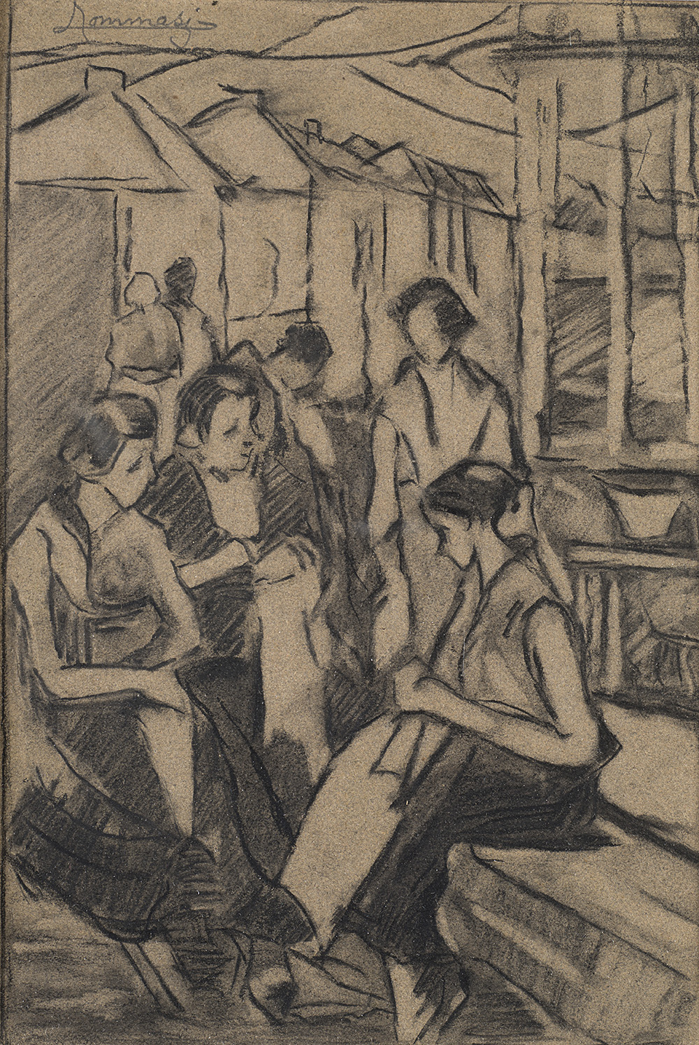 Ludovico Tommasi (Livorno 1866 - Firenze 1941)Le ricamatriciCarboncino e...