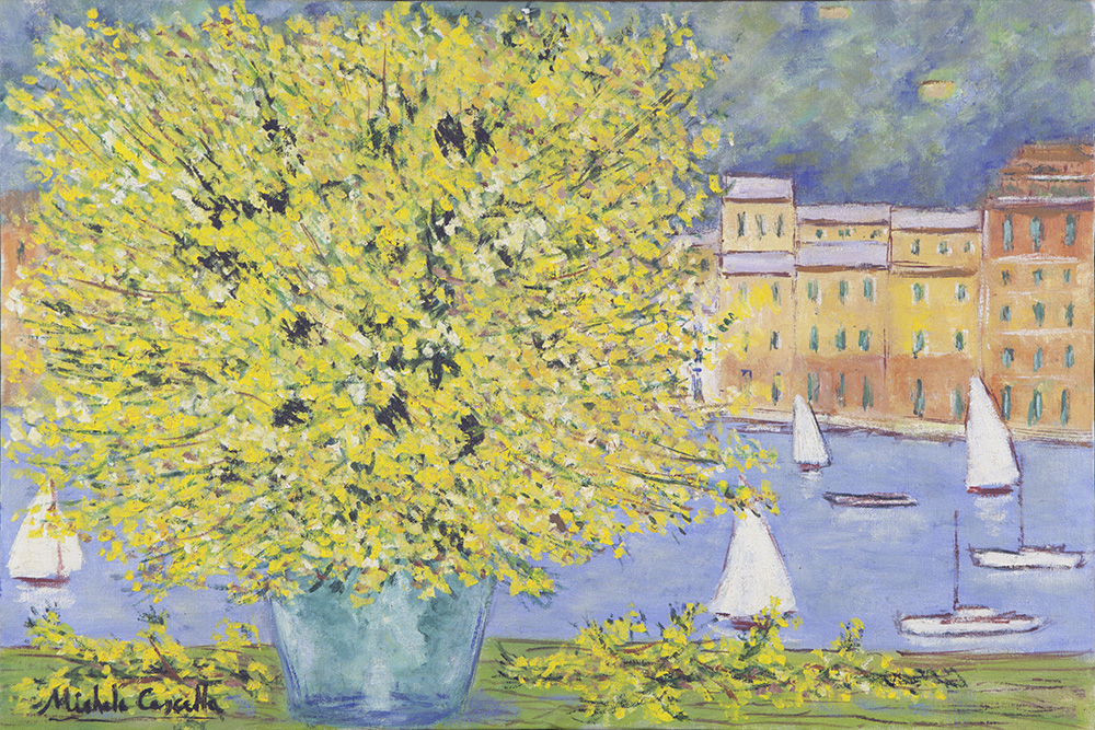 Michele Cascella Ortona 1892 - Milano 1989 " Fiori di Portofino" olio su tela cm 40x60 firmato in basso a sinistra Autentica rilasciata dal Maestro