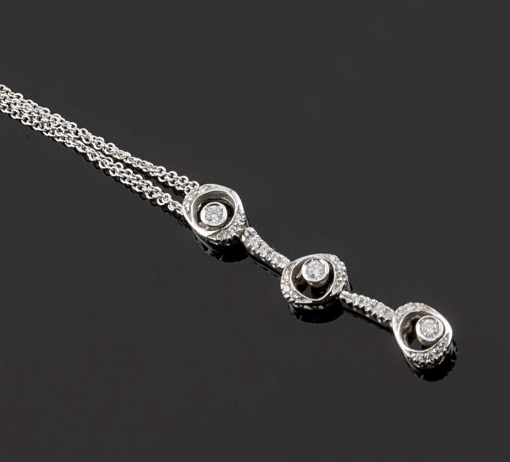 Catena con ciondolo in oro bianco composto da tre diamanti taglio brillante