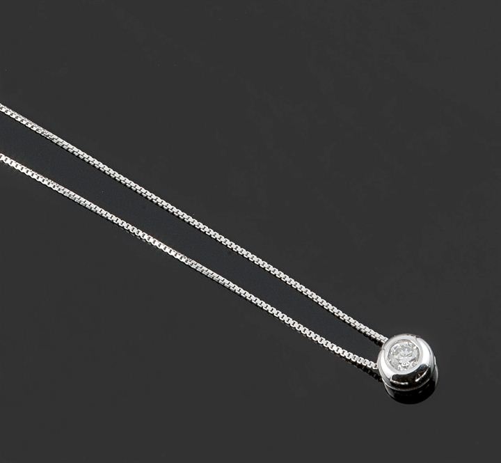Punto luce in oro bianco con diamante taglio brillante di ct 0,25 ca, entro castone tondo