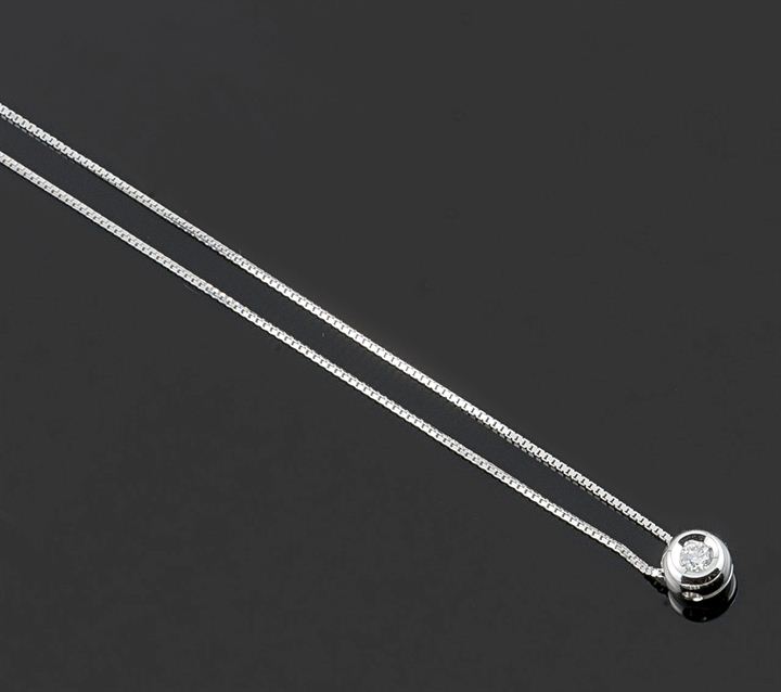 Punto luce in oro bianco con diamante taglio brillante di ct 0,08 ca, entro castone tondo