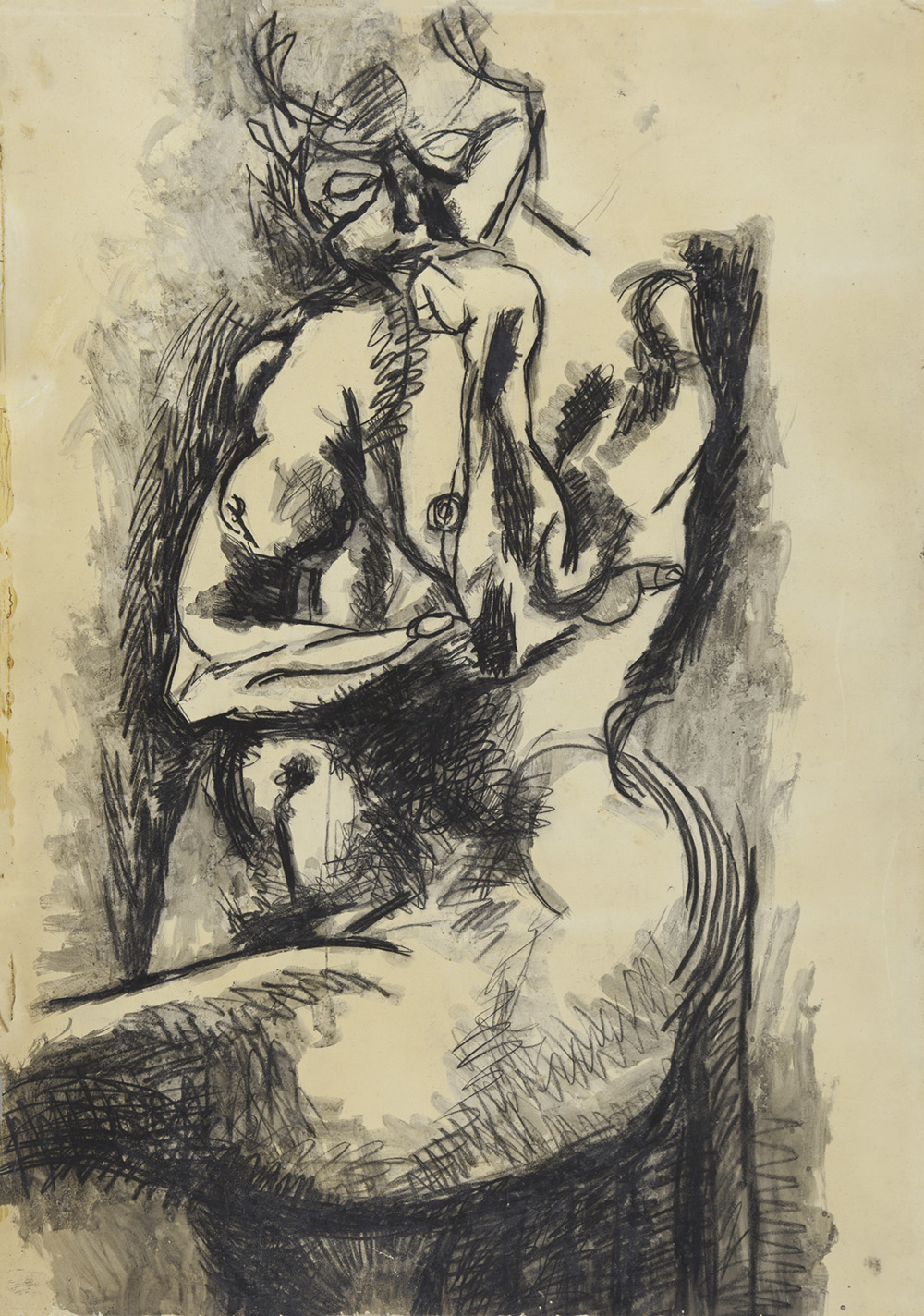 Renato Guttuso Bagheria 1911 – Roma 1987 carboncino, acquerello e china su carta anni '60 cm 100x70 Archivio Renato Guttuso