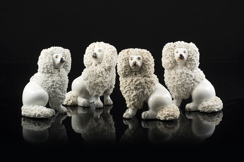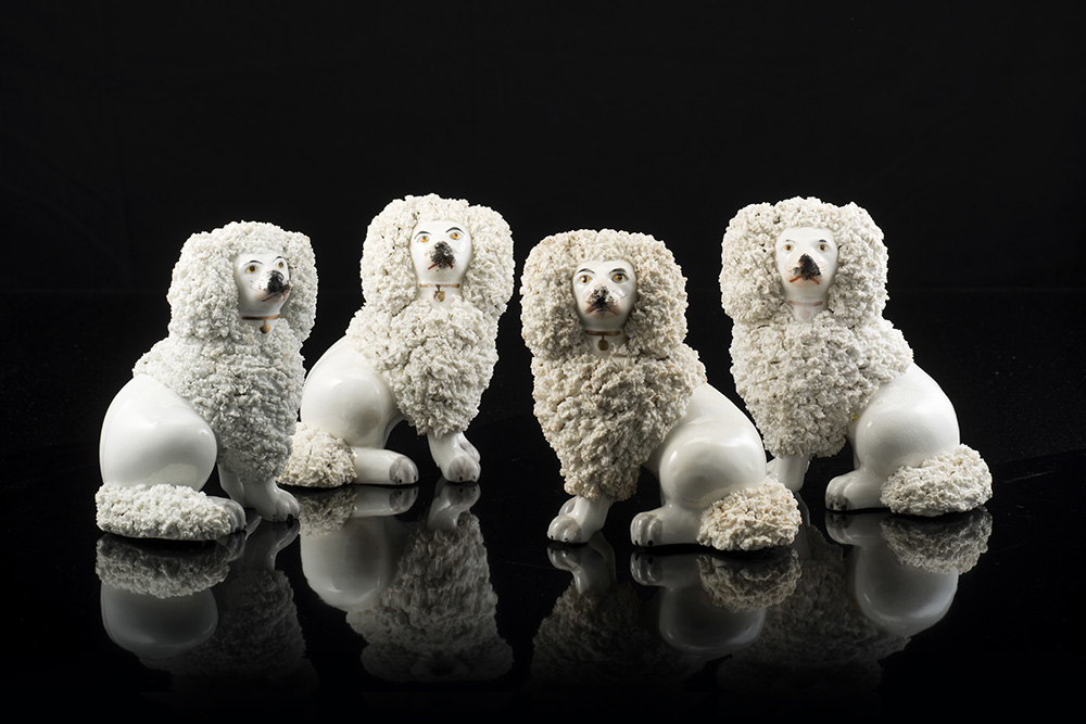 Manifattura inglese secolo XIX "Barboncini" gruppo di quattro statuette in...