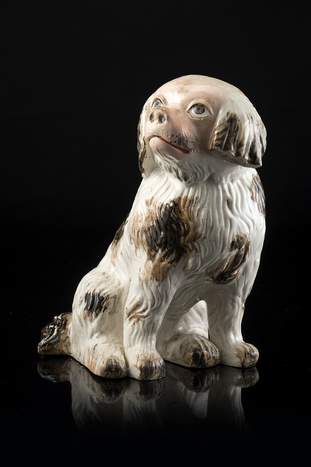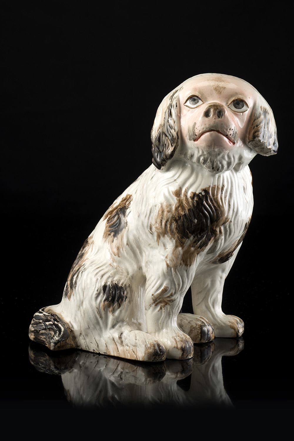 A 19th-century manufacture polychrome ceramic sculpture of a dog (h. cm 25) (losses)