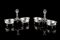 Coppia di saliere doppie in argento, con vaschette di forma ovale raccordate...