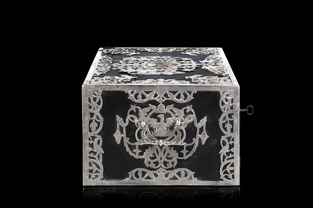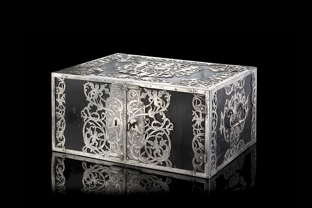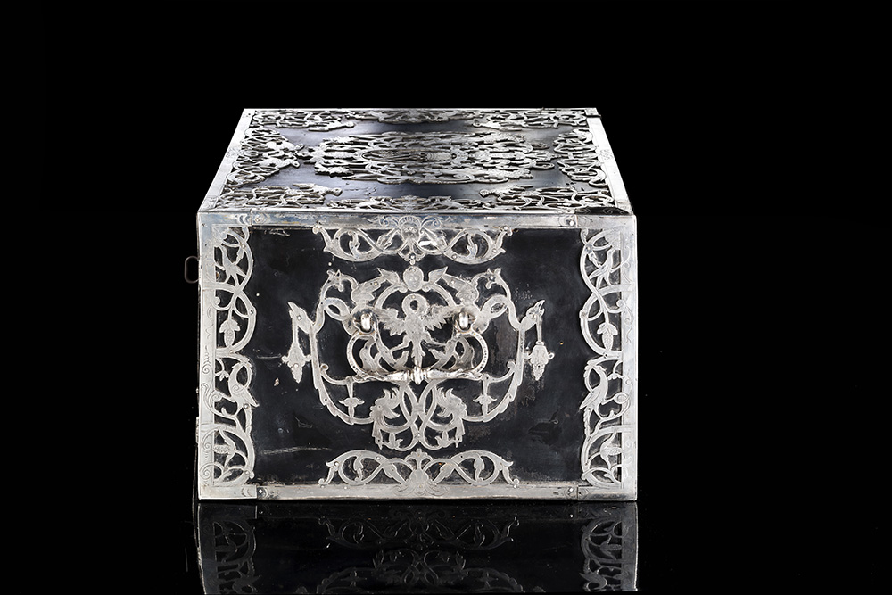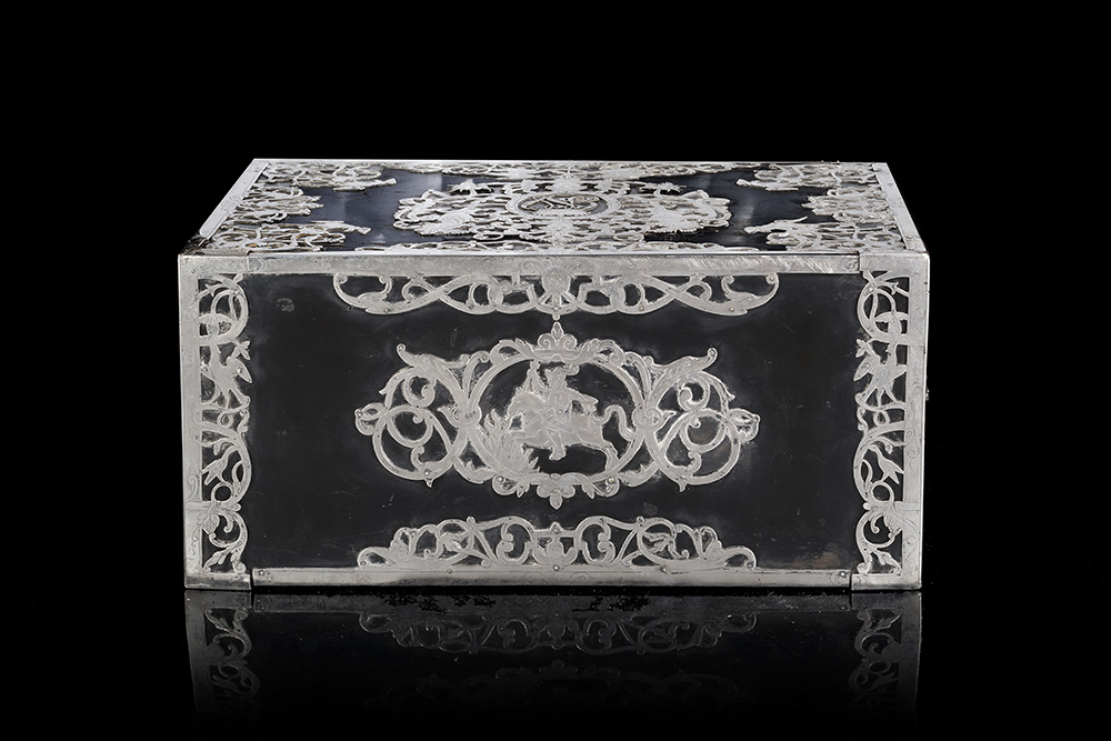 A silver-mounted ebonised wood casket. German area, late 17th century (cm 42x20x30) (defects)