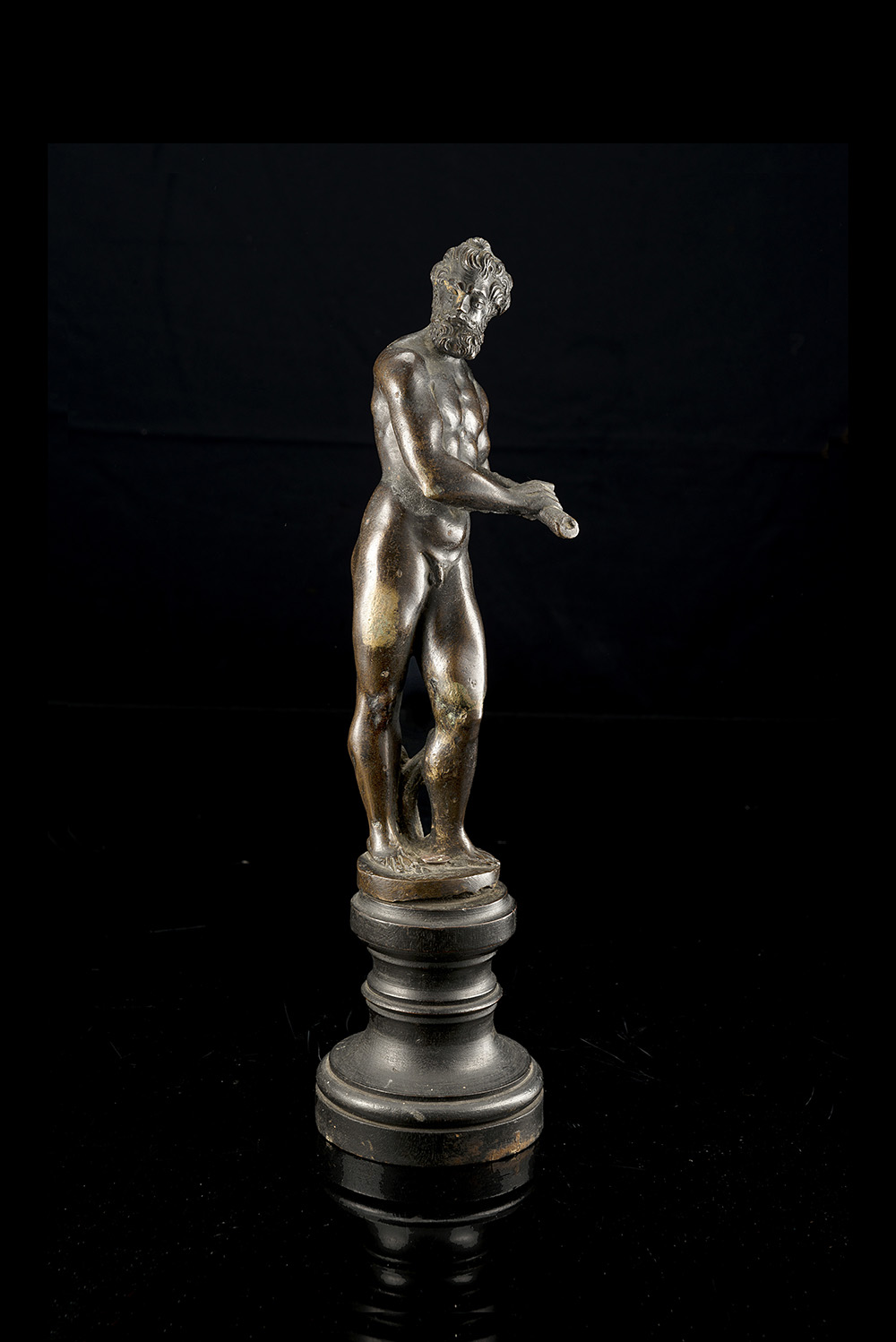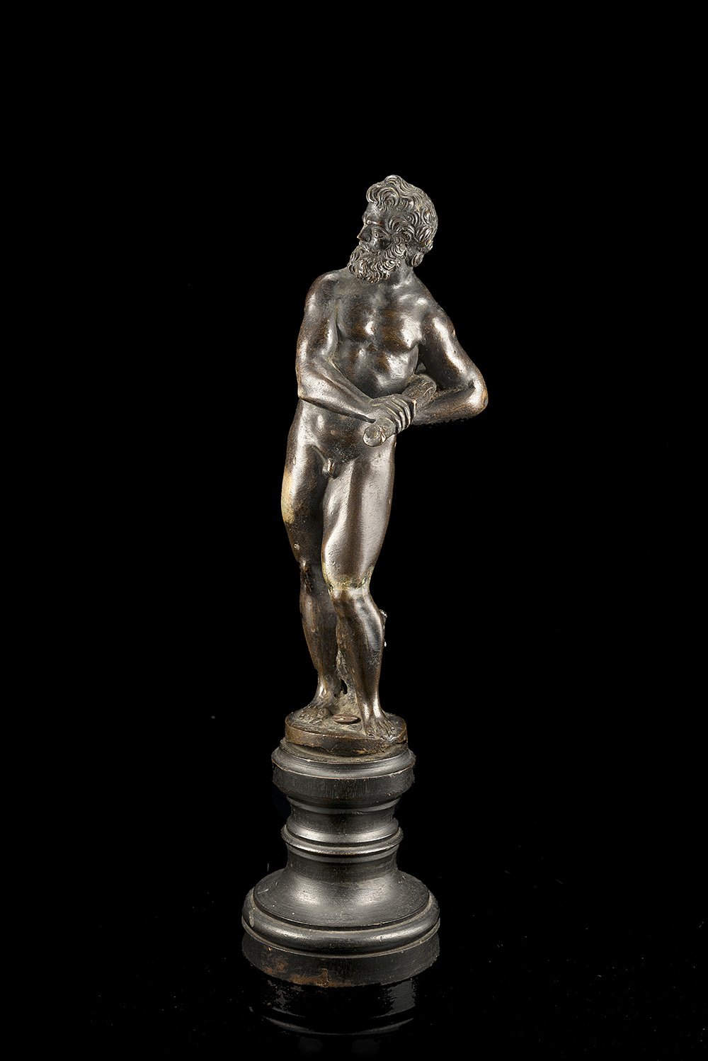 Tuscan artist, 16th century "Hercules" bronze sculpture (h.26 cm) On a turned wood base (defects)
