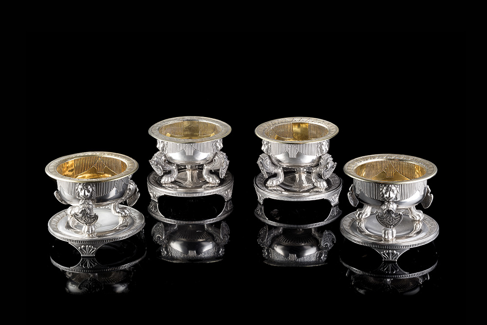 A set of four tripod silver cellar salt. London, 1803. Silversmith Digby Scott & Benjamin Smith