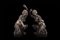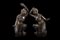 * Due sculture in legno laccato e dorato raffigurate in ginocchio, in abiti...