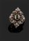 ANELLO Anello in oro giallo ed argento, sommità a volute vegetali, al centro...