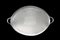 Vassoio biansato in argento con bordo decorato a motivi concatenati e greche....