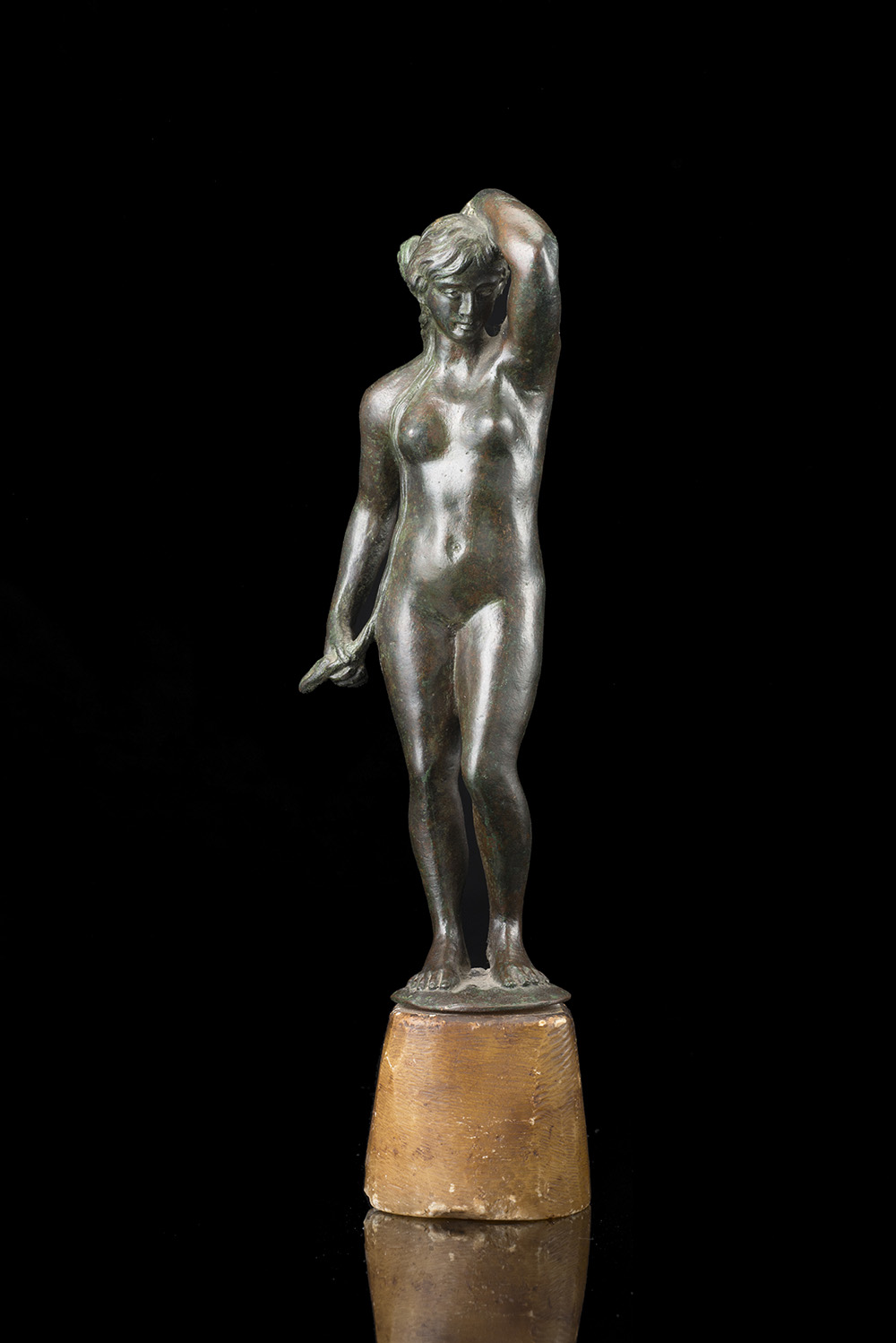 Antica scultura in bronzo raffigurante Venere (h. cm 18) Poggiante su base in alabastro (difetti)