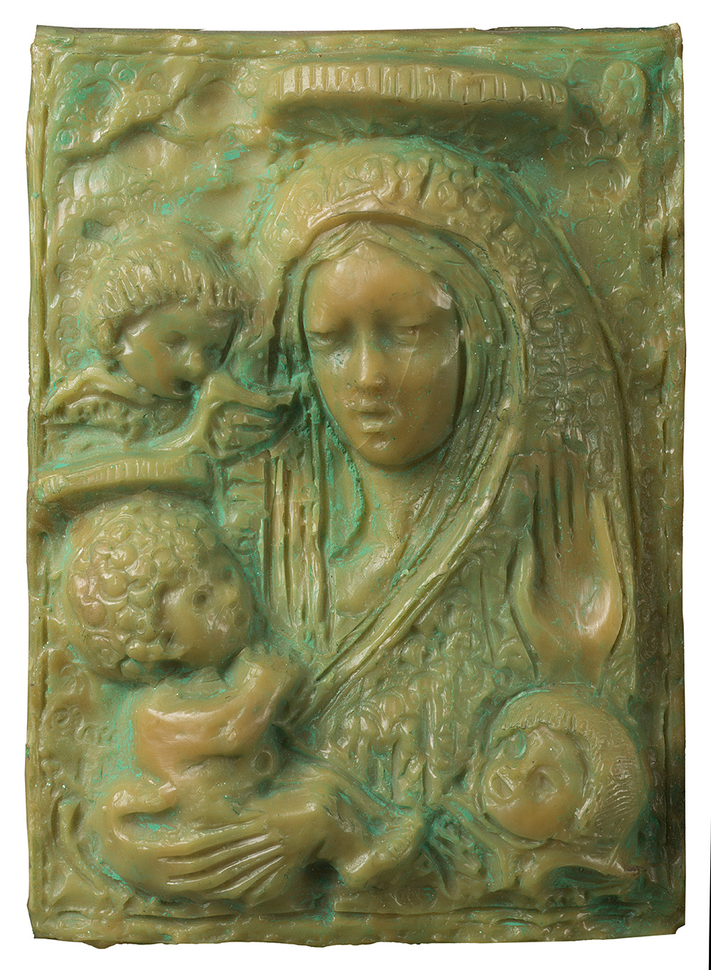Josè Clata (attributed to) "Virgin and Child with cherubs" wax relief (cm 25x19) Framed