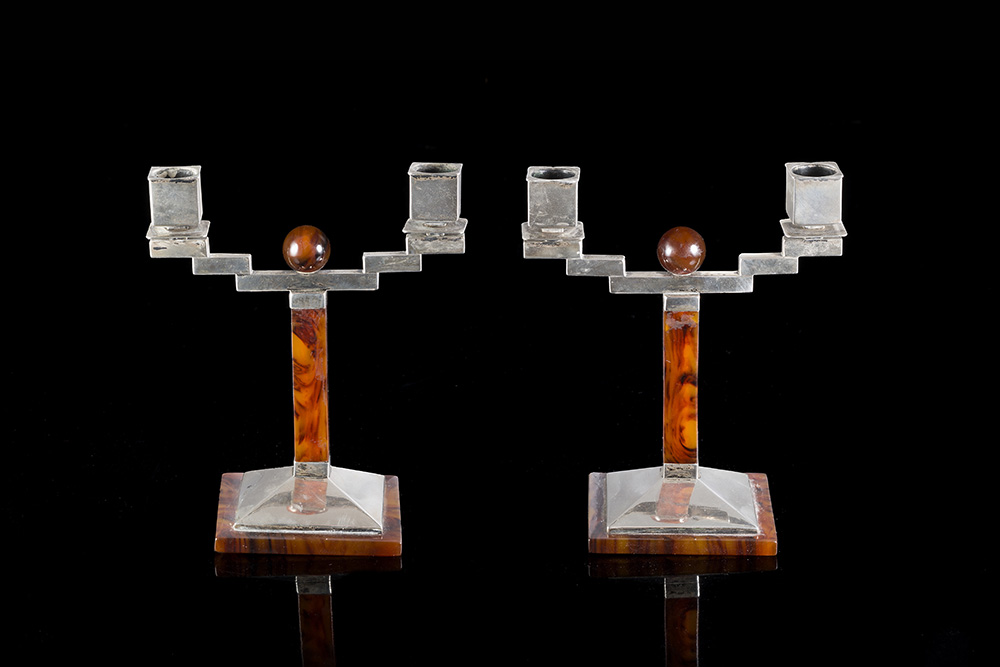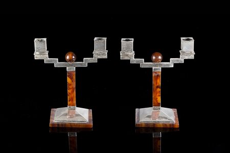 A pair of silver and bachelite candelabras. Italy/Austria, 1920s (h. cm 15 ca.) (defects)