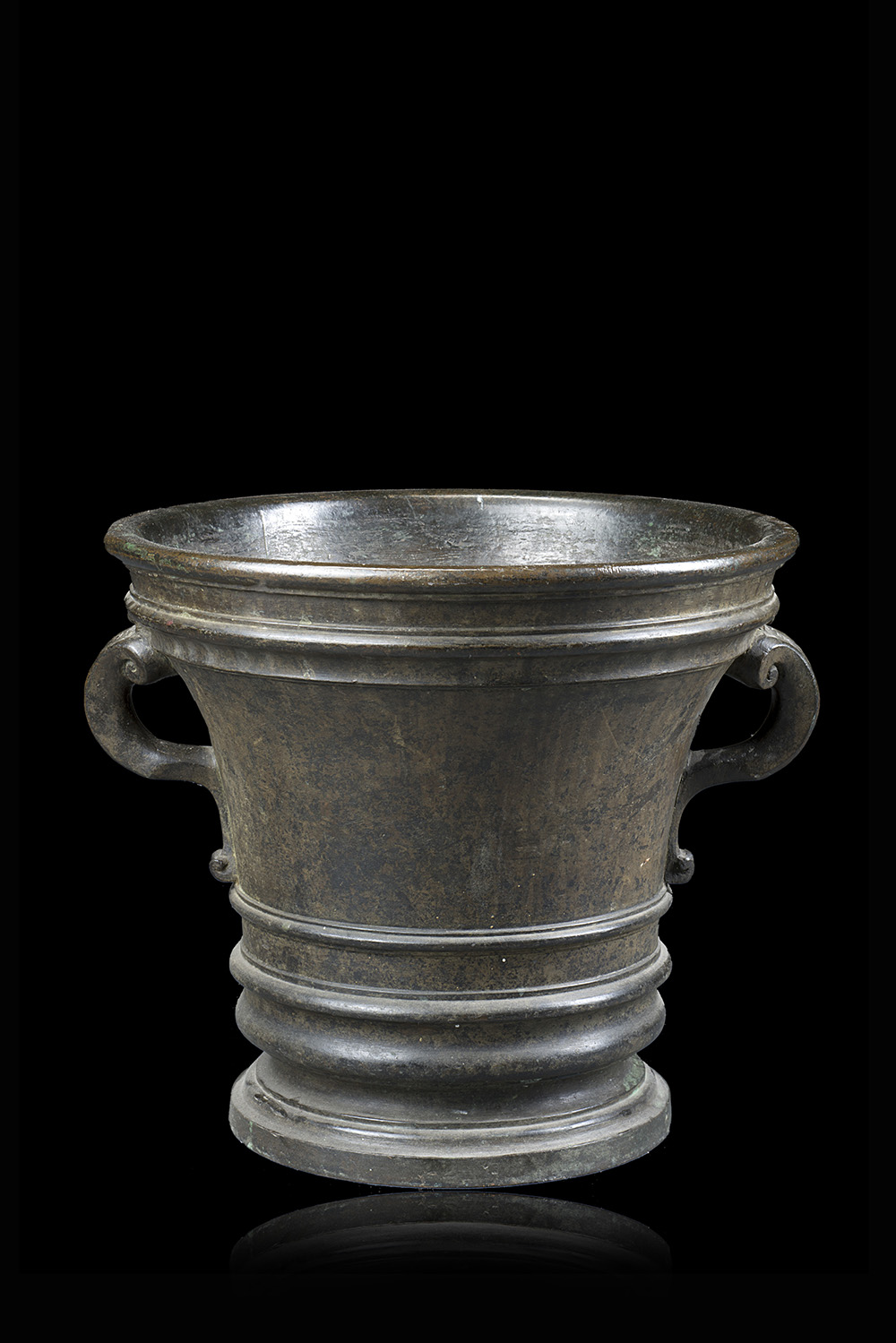 A 16th-century bronze mortar (d. cm 45 x h. cm 40)