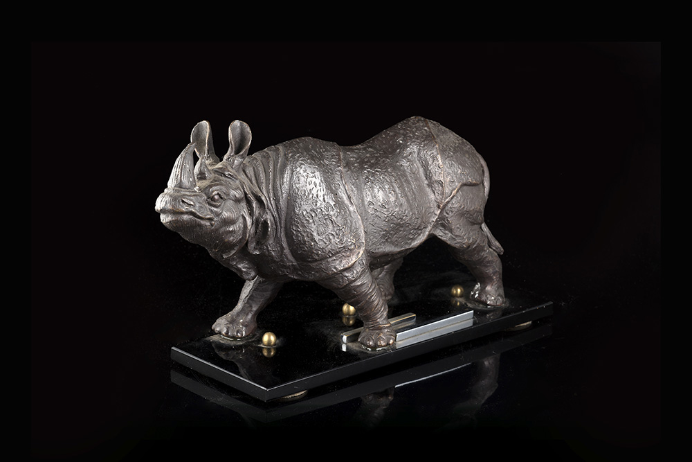 Arte del secolo XX "Rinoceronte" scultura in bronzo (h. cm 16) Poggiante su...