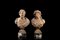 "Fauno e Flora" coppia di busti in terracotta (h. cm 23) poggianti su base in marmo. Firmati al retro (difetti)
