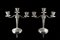 Coppia di candelieri in argento a tre fiamme con reggicandele decorati a...