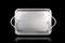 Vassoio biansato in argento con bordi di forma rettangolare e prese incise a...