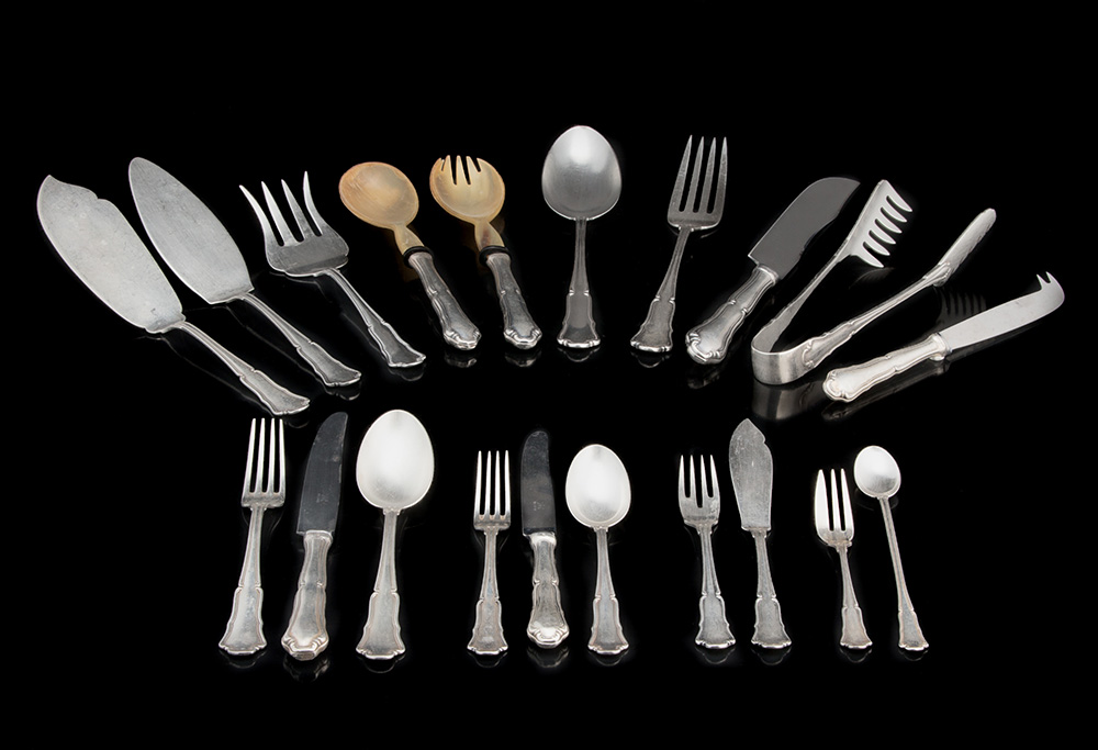 Servizio di posate in argento composto da diciotto forchette, undici coltelli...