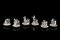 Sei segnaposto in argento raffiguranti putti giocosi su animali, con...