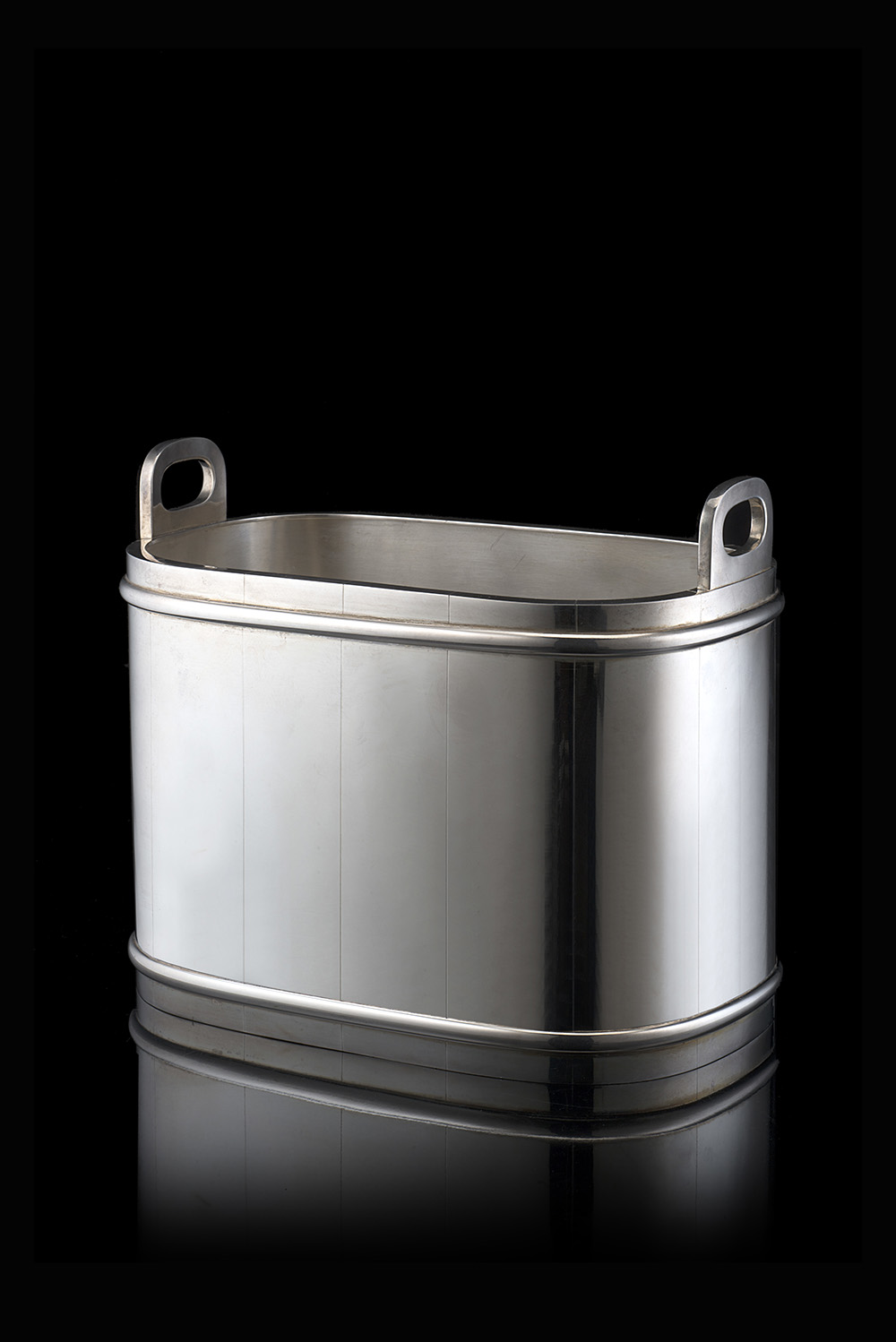 A silver ice bucket. Italy, 20th Centry (cm 28,5x18x24,5 ca.) (g 850 ca.) (minor defects)