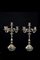 Coppia di candelabri in argento a cinque fiamme, piede circolare polilobato e fusto sagomato; bracci a volute fogliate (h. cm 48,5) (g lordi 2600 ca.) (difetti)