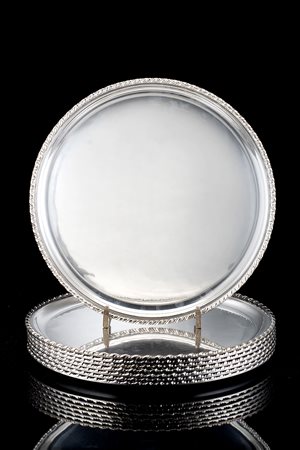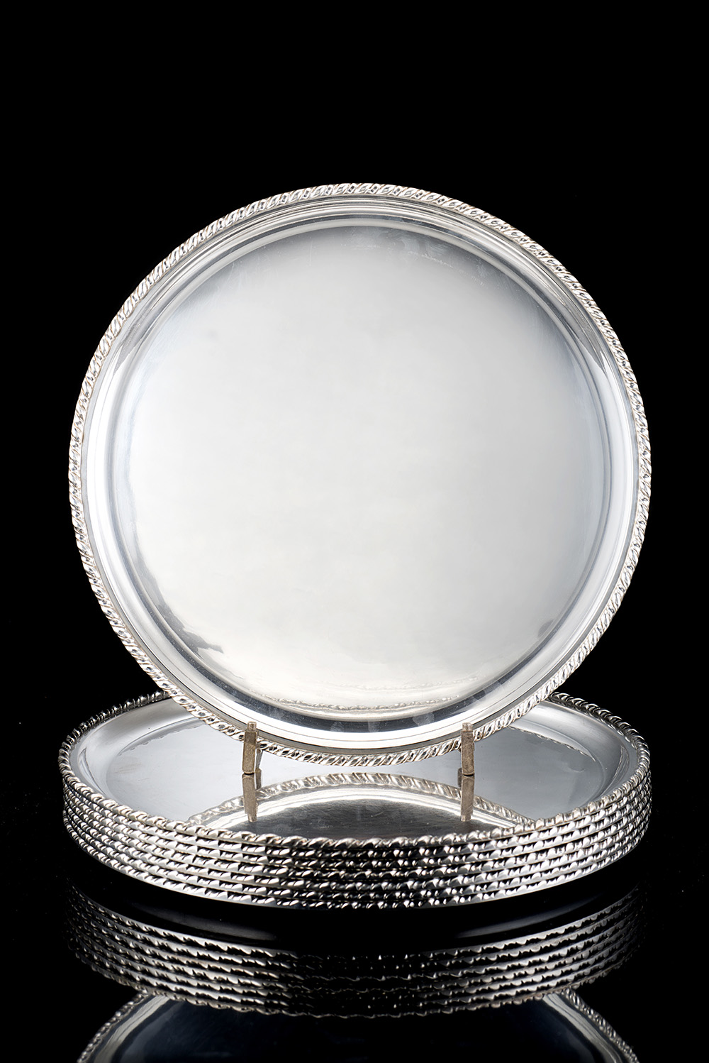 Gruppo di otto sottopiatti in argento. Argentiere Sandonà, Vicenza (d. cm 28) (g 3800 ca.)