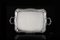 Vassoio biansato in argento decorato a valve di conchiglia e motivi stilizzati. Titolo 800 (cm 44,5) (g 2000 ca.)
