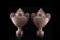 Coppia di vasi biansati con coperchio in marmo rosso. Corpo a spirale e basi...