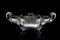 Centrotavola in argento di forma ovale costolata e sagomata, con sponda di tralci d’uva a tutto tondo,
