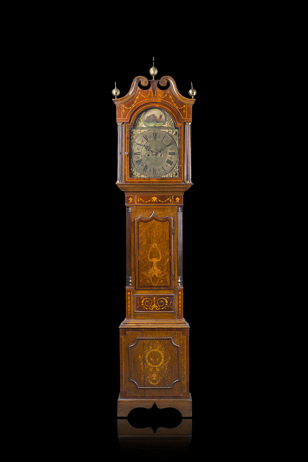Orologio a torre con cassa in legno filettata e intarsiataInizio secolo...