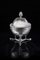 Zuccheriera in argento con corpo a bacile sorretto da tripode con montanti e tamburo decorati da mascheroni, fascia a motivi stilizzati e cinture godronate; piedini a zoccolo e coperchio con pomolo a pigna. Regno Lombardo-Veneto, secolo XIX (h. cm 15 ca.) (g 230 ca.) (difetti)