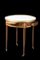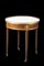 Tavolino di forma circolare lastronato in mogano a due cassetti e due tiretti sottopiano. Applicazioni e ringhiera traforata in bronzo dorato. Gambe rastremate con scarpette in bronzo dorato e munite di rotelle. Piano in marmo bianco. Secolo XIX (d. cm 65x h. 72,5) (difetti)