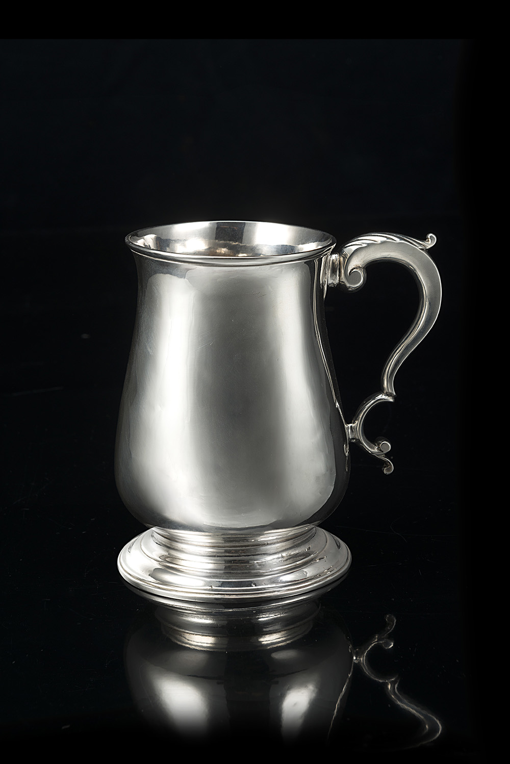 Boccale in argento con base circolare a spirale e ansa a volute. Williams Cripps, 1776 (g 380 ca.)