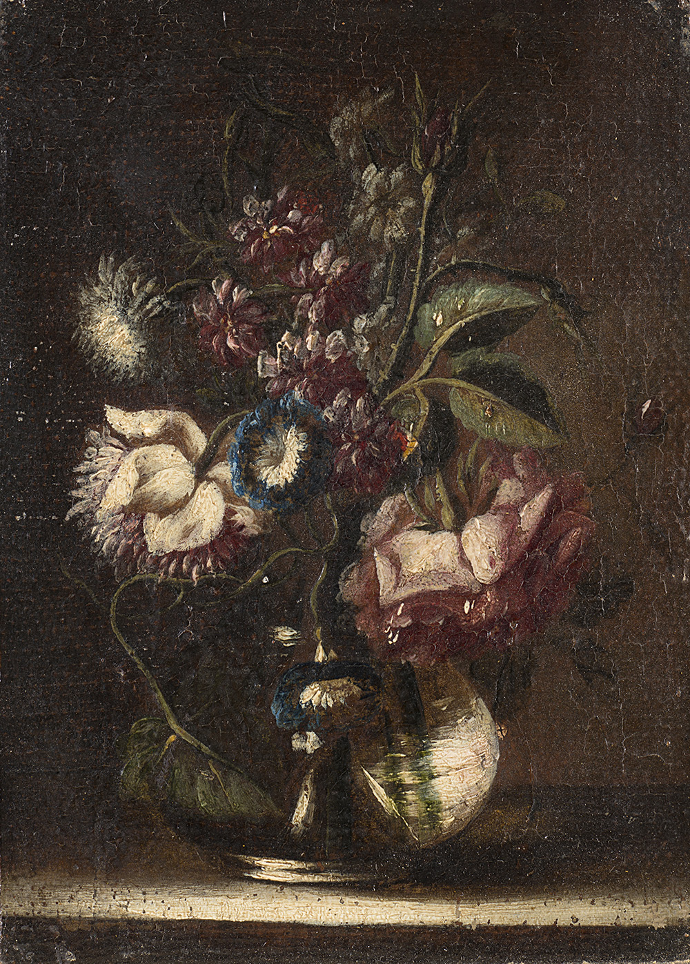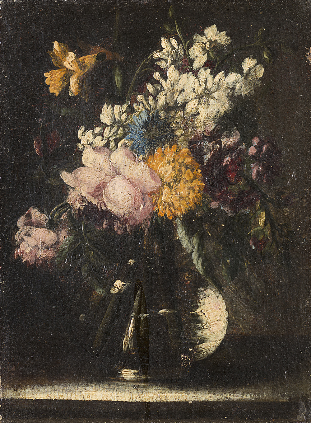 Ignoto del secolo XVIIVaso con fiori bianchi, gialli e rosaOlio su tela...