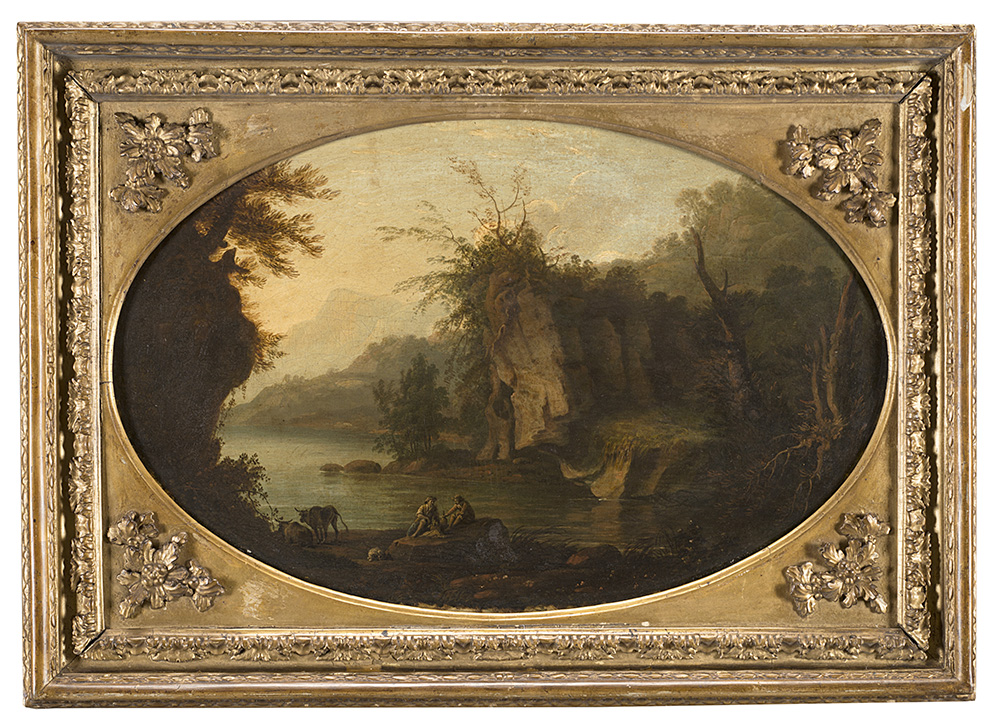 Scuola della fine del secolo XVIIIPaesaggio lacustreOlio su cartone pressato...
