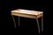 Consolle lastronata in mogano con fasce traforate in legno chiaro a motivo...
