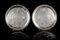 Coppia di salver in argento con fondo inciso con emblema e motto ‘ROBORE...