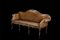 Divano a orecchioni in noce con schienale e braccioli sagomati e intagliati a...